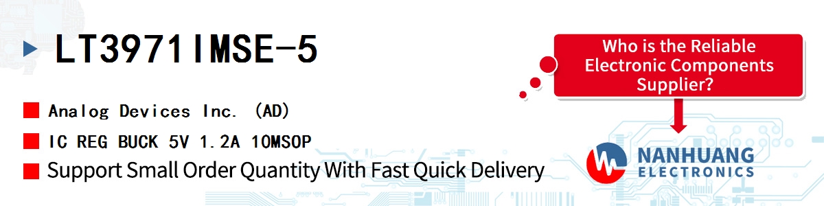 - LT3971IMSE-5 Analog Devices (ADI), IC REG BUCK 5V 1.2A 10MSOP, Integrated Circuits (ICs)~PMIC - Voltage Regulators - DC DC Switching Regulators